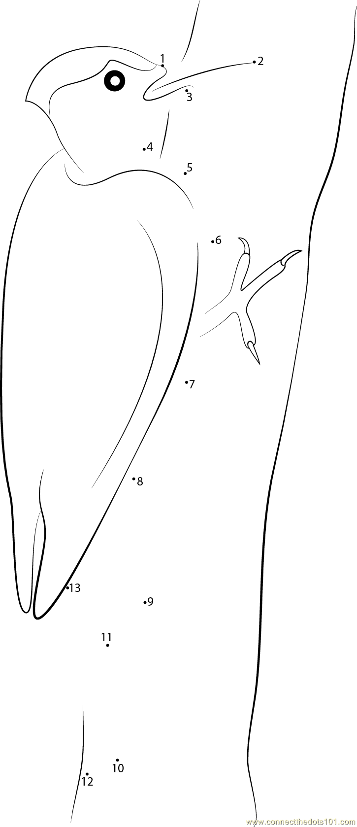 More Woodpecker dot to dot printable worksheets