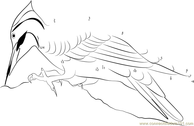 Pileated Woodpecker On Log - Connect the Dots for Kids